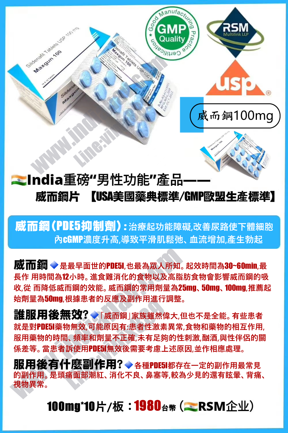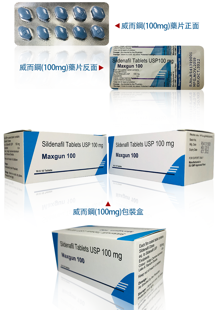 威而鋼(Maxgun100)是正宗的印度版威而鋼,是目前印度助勃起藥中最早開發及專針對藍色小丸子的產品,成分跟威而鋼完全相同就是單一性西地那非,一款專門針對渤起功能障礙ED的。