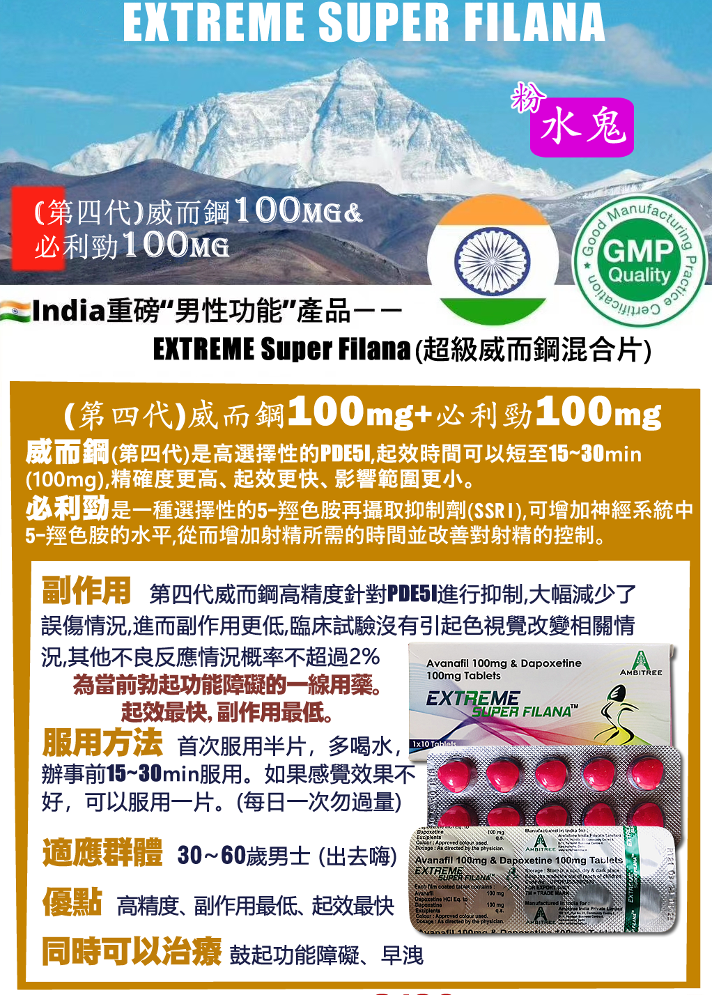 [廠家供貨 歡迎代理批發]擎天神柱 粉水鬼 EXTREME SUPER FILANA粉水鬼(第四代Avanafil威而鋼雙效)