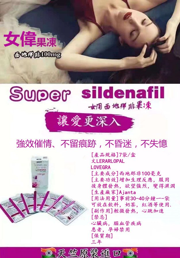 Lovegra果凍由印度Ajanta公司出品,每支果凍中含有100mg枸櫞酸西地那非,能增強女性快感,改善性冷淡。適用於性欲低下、性生活不和諧的女性,安全有效,副作用小。